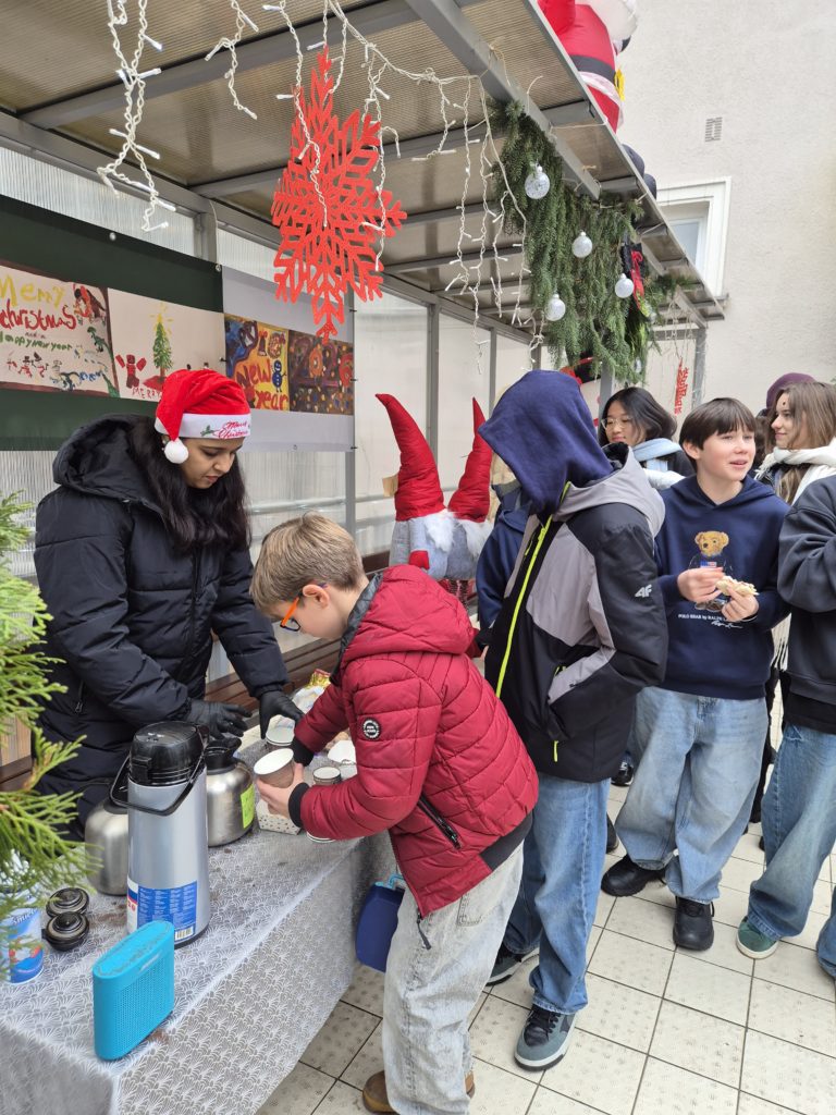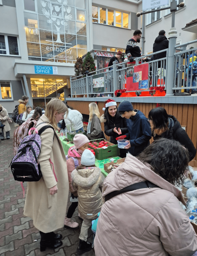 Primary pupils also enjoyed fun and engaging activities led by the PTA, ensuring a festive and inclusive experience for all. The crowning moment of the week was the Christmas Charity Market, held after school outdoors. Led by dedicated PTA parents and supported by Student Council members, the market was a great success and a true celebration of creativity and collaboration. Visitors enjoyed a gallery of student-made artwork, as well as a wide selection of beautiful decorations created by EIS families during the Monday workshop and by pupils during lessons under the guidance of our Art teacher, Ms Magda. The festive atmosphere was completed with sweet treats and refreshments, including hot drinks, toasts and freshly made waffles, which were warmly received by all who attended.