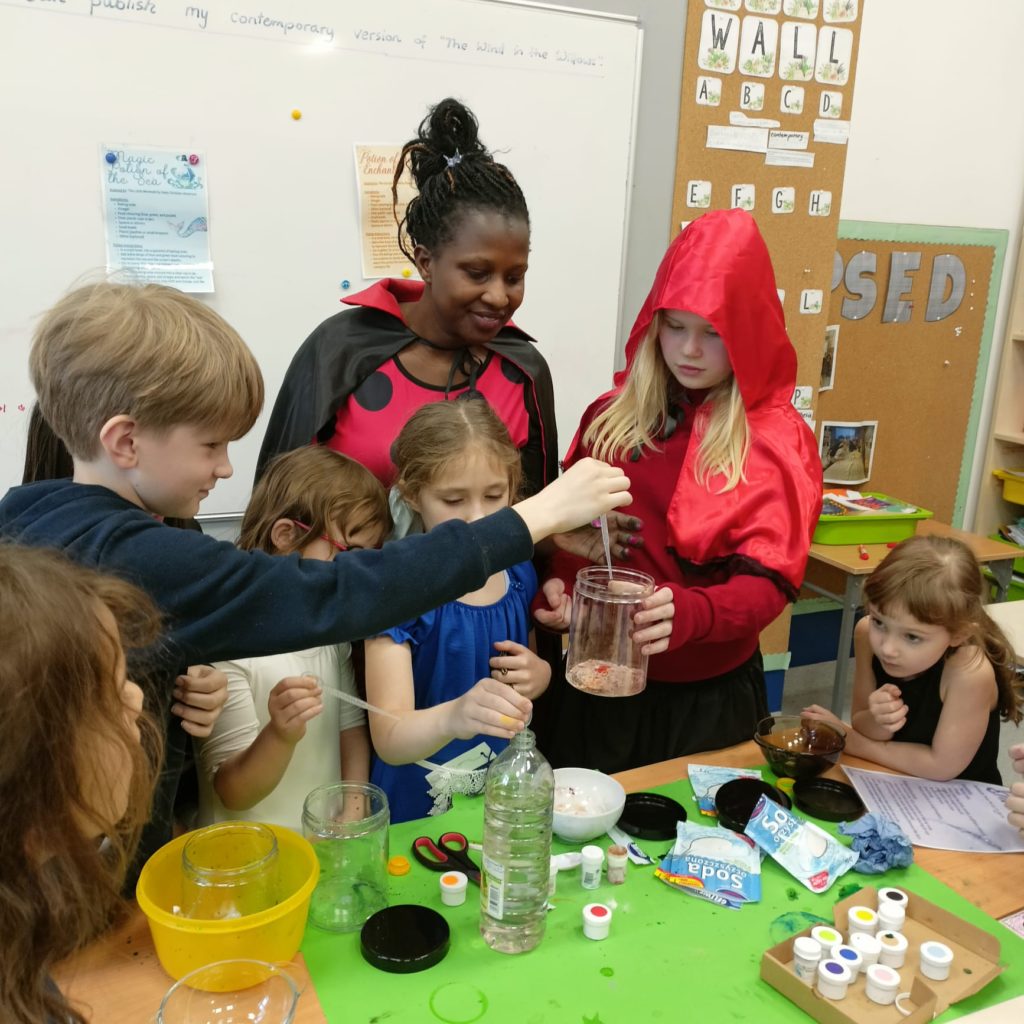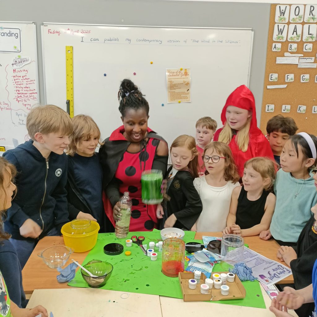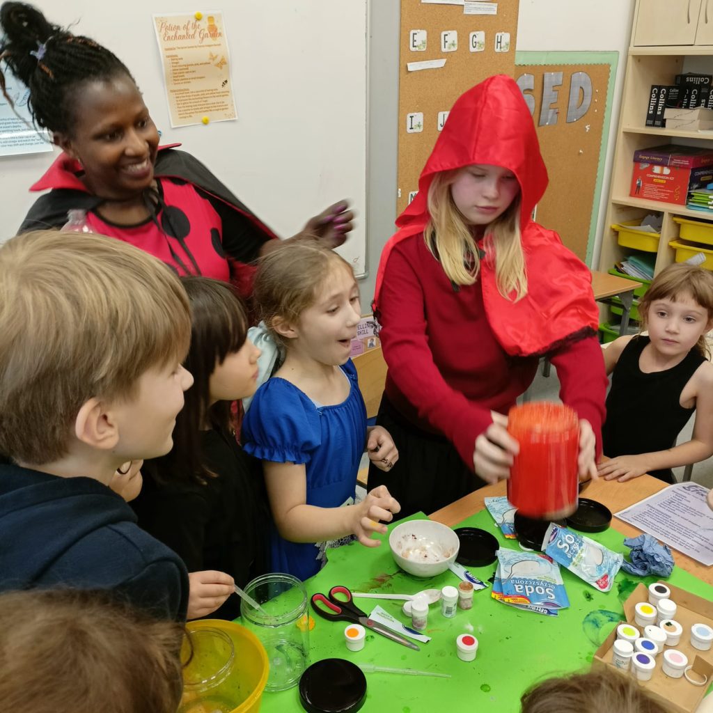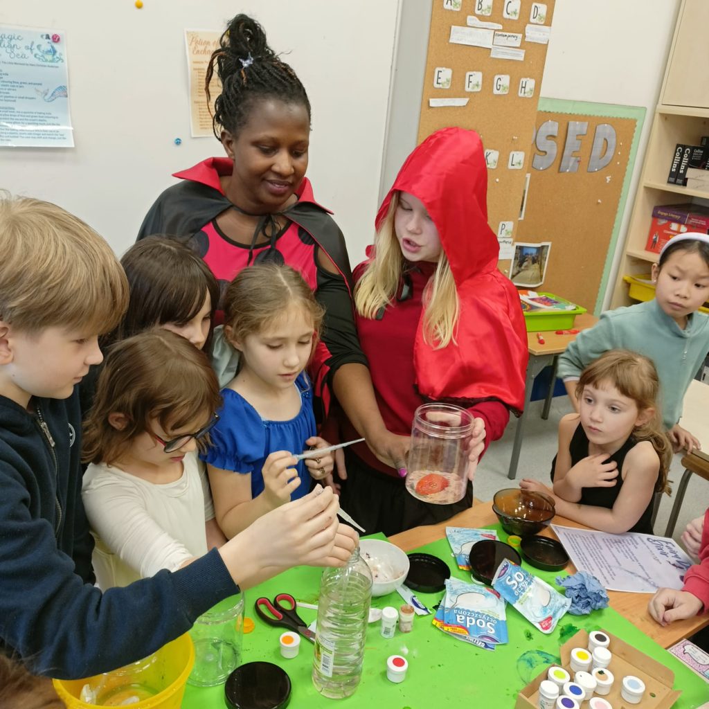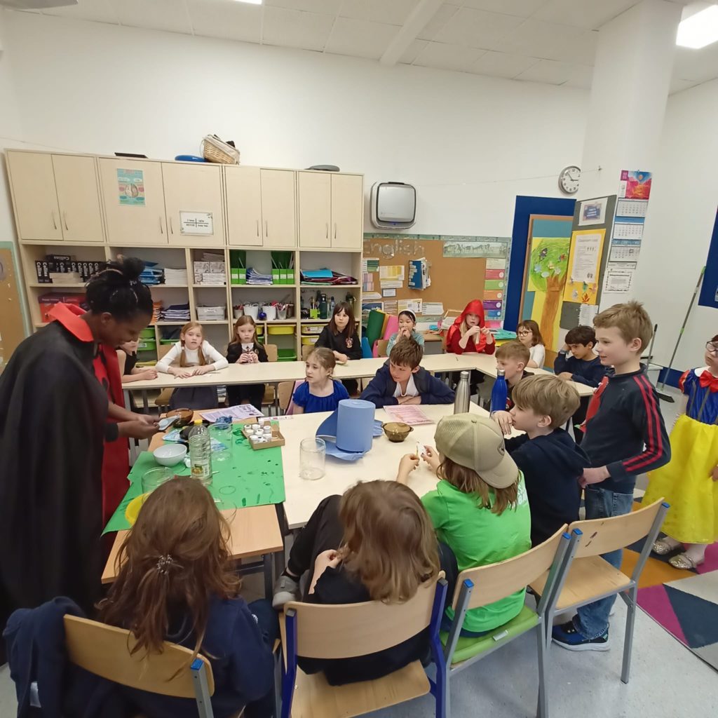 On Friday April 11th, the celebration continued across our Primary School. Pupils arrived dressed as characters from their favourite books, from wizards and fairies to pirates and classic literary figures. Throughout the day, they took part in themed workshops designed to bring books to life. Highlights included a potion-making activity that blended science with fantasy, literary challenges that tested students’ knowledge of famous quotes, a mime game focused on story characters, and a creative bookmark-making session led by a member of our PTA.