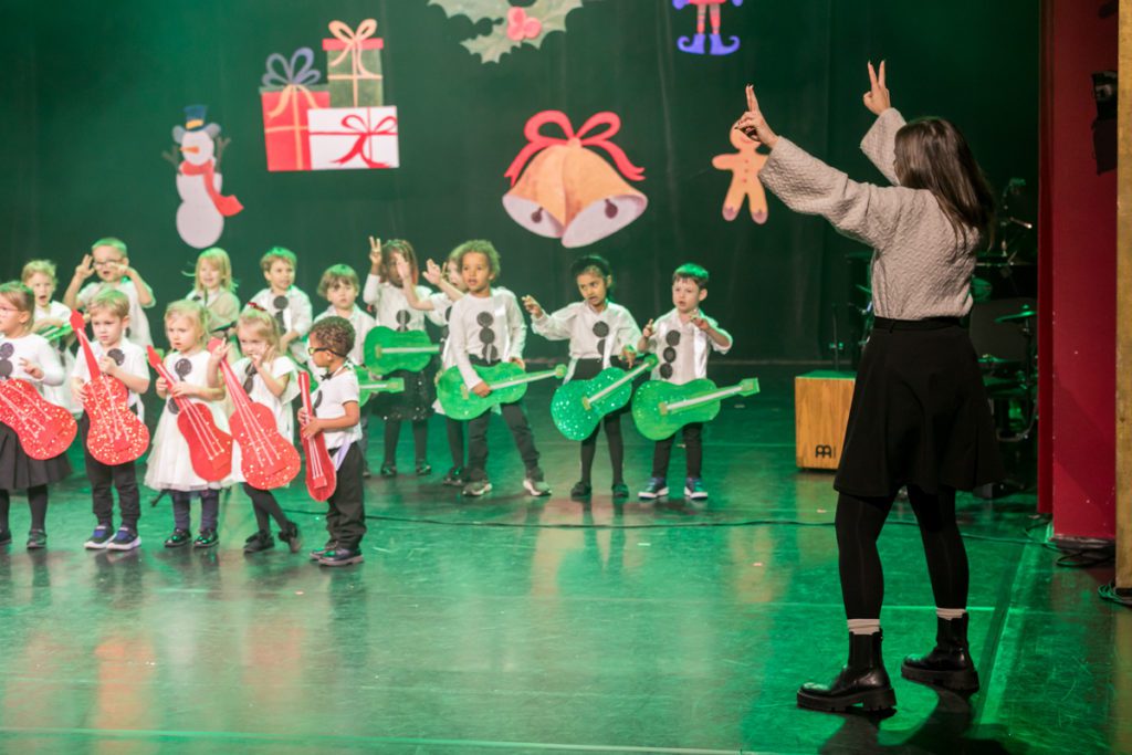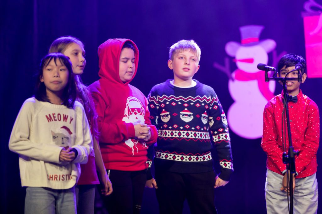 The stage was then joyfully taken over by our Early Years pupils, who instantly captivated the audience. Their performances transformed the theatre into a true musical wonderland, beginning with a vibrant carnival dance full of colour, movement and infectious enthusiasm, followed by lively winter-themed songs. Their confidence and joy on stage were rewarded with delighted applause, creating a wonderfully festive atmosphere from the very start.